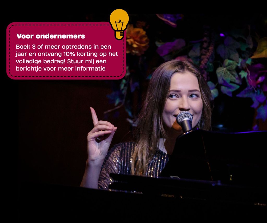Zing mee met hits van ABBA en laat je dansmoves zien op de nummers van Elvis in deze ‘one woman pianoshow’! Door het brede repertoire is een pianoshow geschikt voor alle leeftijden.